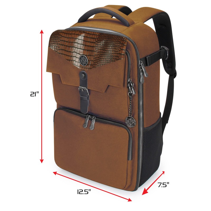 ENHANCE MTG Backpack - Collector's Edition TCG Backpack for Deck Boxes, Sleeved Cards, Playmats, MTG Accessories - Customizable Card Organization with Built-in Defender Screen (Dragon Brown)