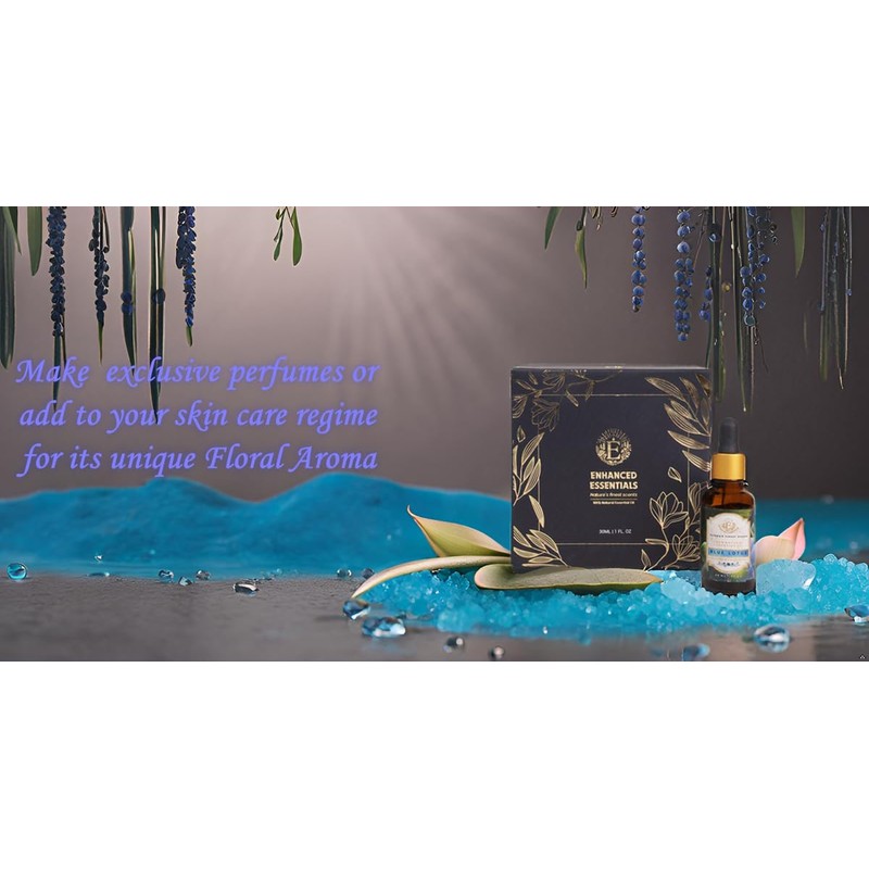 • Enhanced Essentials Blue Lotus Essential Oil - 100% Pure & Luxuriously Enchanting Experience the mesmerizing and exotic fragrance of Enhanced Essentials Blue Lotus Essential Oil, a premium essential oil meticulously distilled from the finest blue lotus flowers. This pure, therapeutic-grade oil captures the essence of blue lotus, offering a luxurious and calming experience for your mind and body.