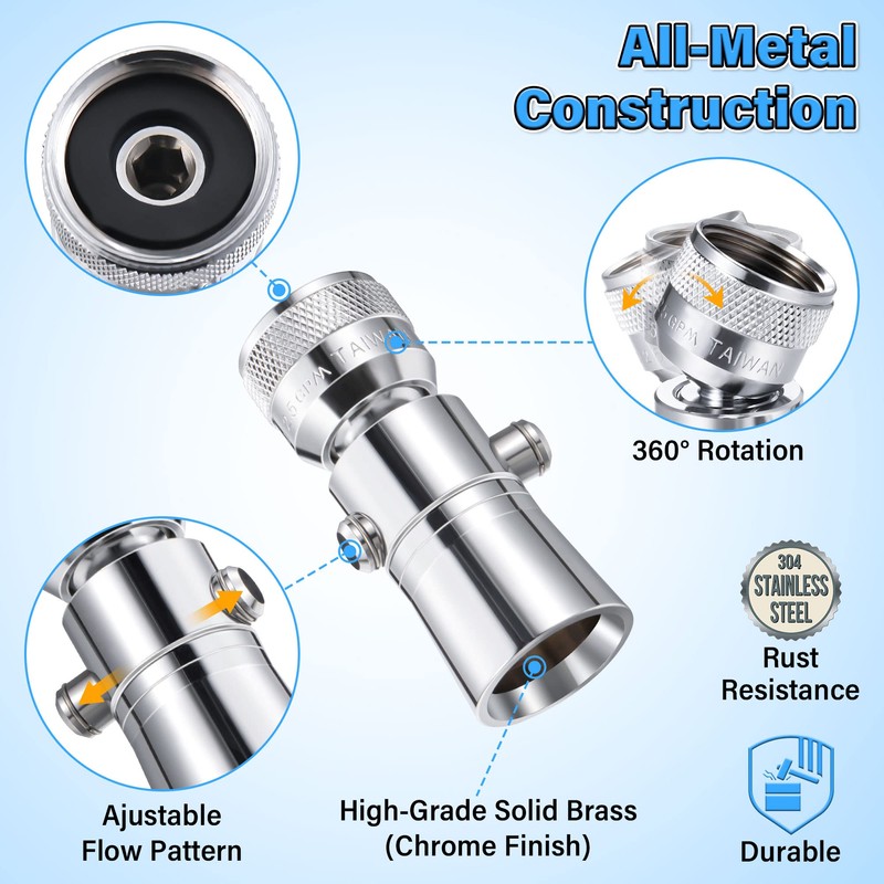 - All Metal Construction: this water saving shower head is constructed out of sturdy solid brass, stainless steel polished chrome finish, ensures rustproof and last for years