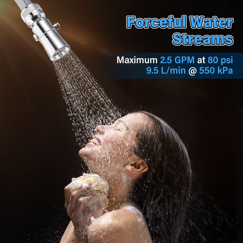 - Forceful Water Streams: 1" diameter spray face, the brass shower head features a strong, full spray streams of water to satisfy all of your showering needs; You will experience a steady water flow with a 2.5 GPM flow rate at 80 psi, 9.5 L/min @ 550 kPa
