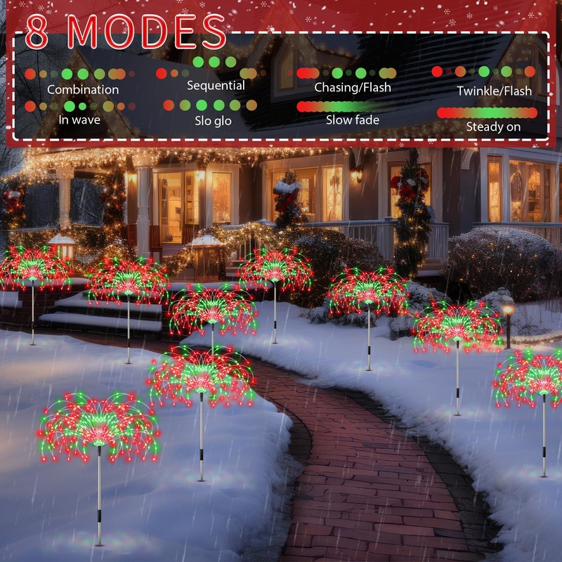 - Scope of Application: the plug in firework light is connected with the copper wire light string through the spiral port, can be disassembled and charged; Starburst lights can be applied to decorate corridor, pathway, garden, yard, patio, backyards, sidewalks, flower beds and fences; Match with red green Christmas elements which creating a strong festive atmosphere