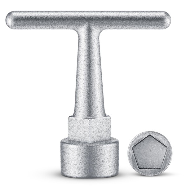 Enhon Curb Box Wrench for Pentagon Curb Boxes, Water Meter Wrench for Penta Socket, T Handle Penta Tool, Water Valve Shut Off Tool(1 Pack,Silver)