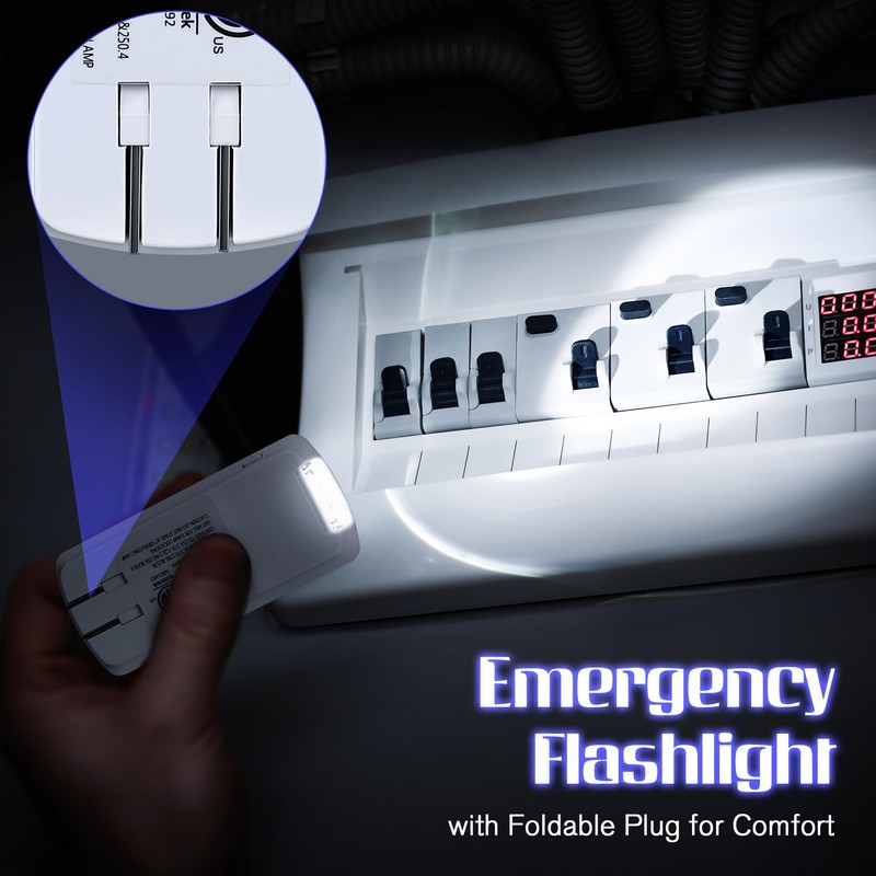 - Emergency Power Failure Night Lights and Flashlights: this 5-in-1 LED light is a versatile night light that integrates 5 uses; It can be applied as a night light, power failure light, tabletop light, emergency flashlight and SOS distress signal light; Designed with a foldable plug, simply unplug from the outlet and press the button to use the integrated flashlight during emergencies; And as a night light, it automatically emits a cool bright white light when the power in your home is turned off