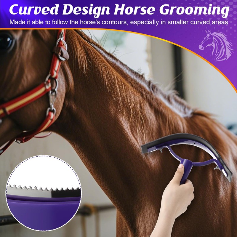- Horse Shedding Tool: The other side of sweat scraper has a stainless steel blade which could work as a horse deshedding tool, just glide the horse shedding tool over horse hair to clearing excess hair, debris, and dust from the coat, face, and legs