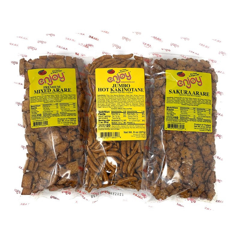 - Enjoy Brand Tripack of Premium Mixed Arare, Sakura Arare, and Jumbo Hot Kakinotane Arare