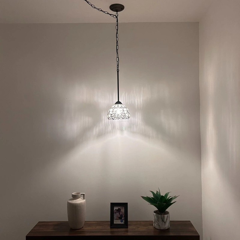 Enjoy Decor Lamps Tiffany Style Mini Hanging Lamp Plug In White Stained Glass Baroque Style 60"H