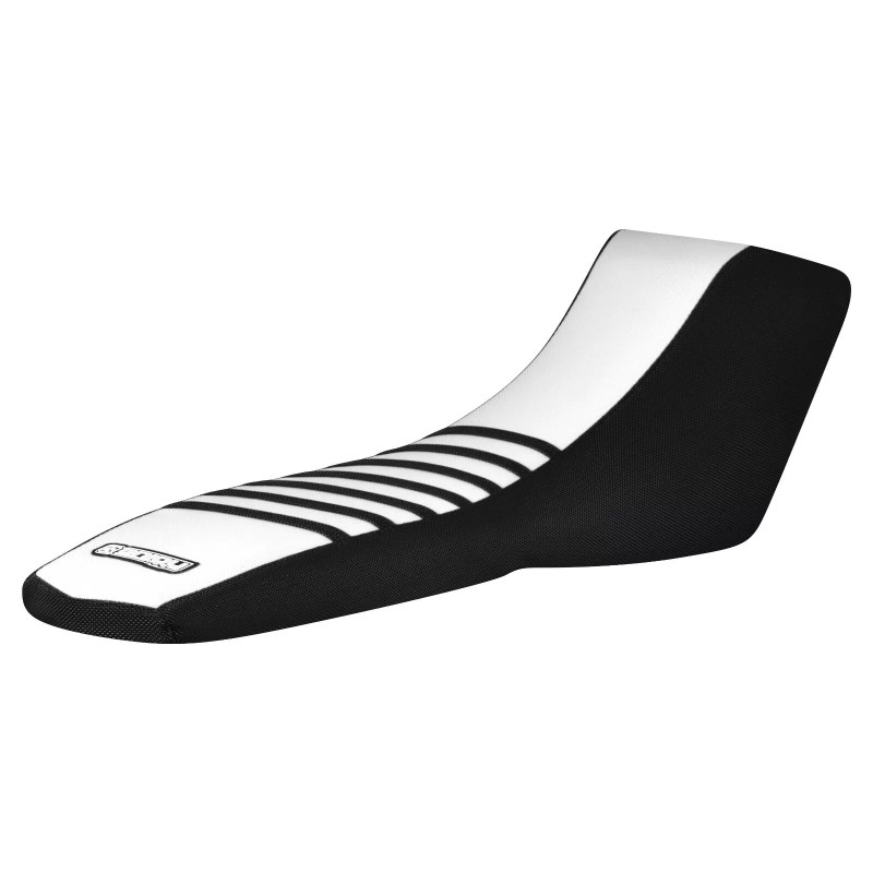 Enjoy Mfg Ribbed Gripper Seat cover BLACK sides WHITE top BLACK ribs Enjoy Mfg seat covers are an awesome up grade for your Quad Very easy to install. Each seat cover is made to fit perfectly. Enjoy Mfg uses the finest purpose built material for off road riding and racing. Fit: Arctic Cat DVX 400 Years: 2004,2005,2006,2007,2008 Enjoy Mfg gripper material Die Cut for an exact fit Double Stitched Seams Raised Gripper traction ribs Raised Pvc rubber Enjoy Mfg logos