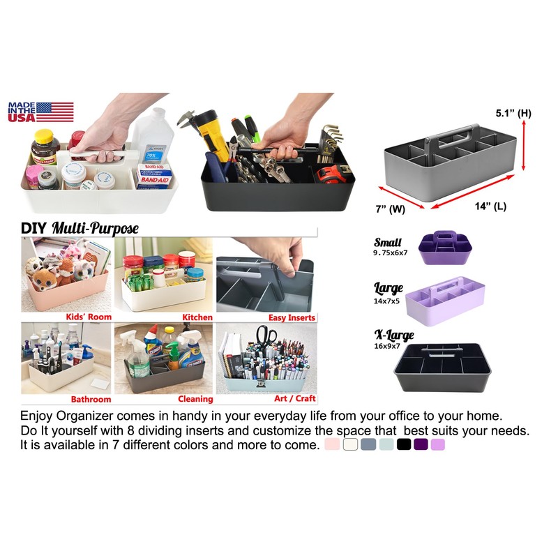 - SIZE: Each caddy measures 14" x 7" x 5.1" high, making it a spacious solution for various storage needs. The caddy is easy to clean with water and soap, ensuring hassle-free maintenance. Available in a 4 PACK - Enjoy Organizer.