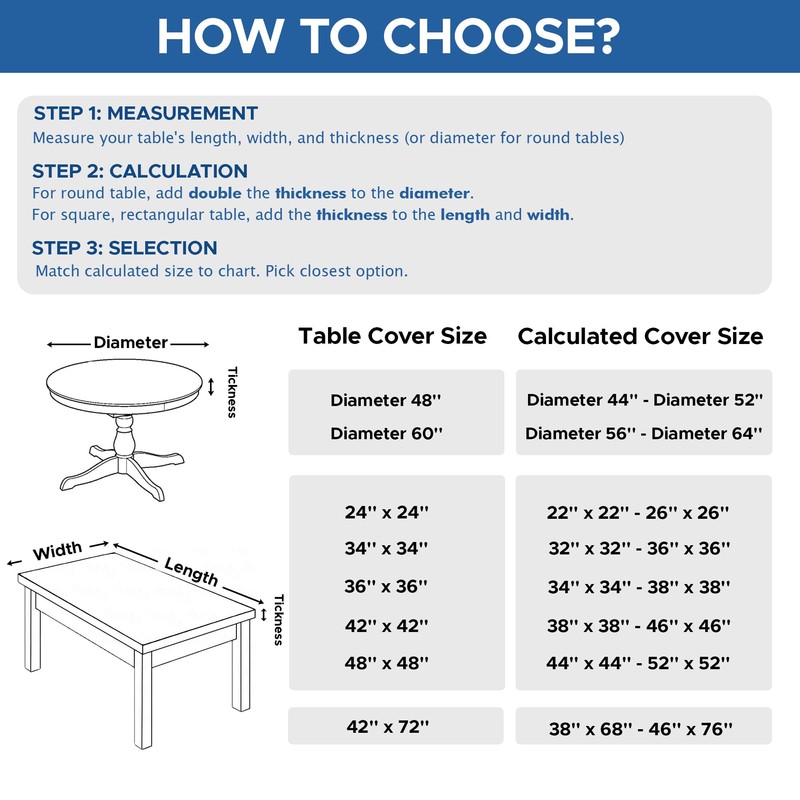 - Easy to put on & Take off: Featuring a four-way stretch and a reusable design, our spandex fitted tablecloths are simple and quick to install. Just slip the tablecloth over the table and adjust the topper, which can easily be done by one person. Additionally, removing it is extremely convenient, saving time and effort.