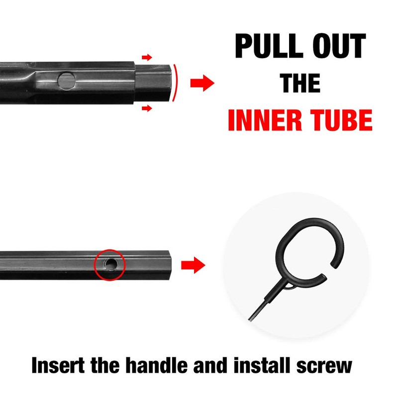- Read the installation instructions carefully when installing: 1. Tighten umbrella stopper. 2. Push up the umbrella inner shaft and open it. 3. Pull out 2 adjustable umbrella shaft tubes until hearing 2 clicks when fully pull out. 4. Press clicking latch on the last tube and insert it into C-shape handle until it clicks, installation completed.