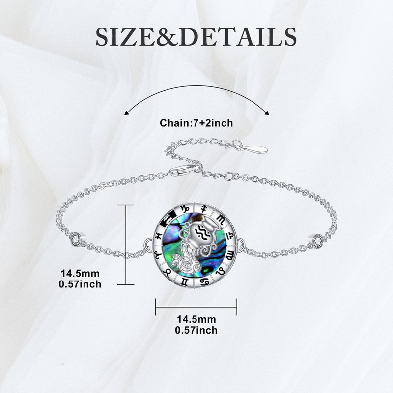 - Zodiac sign bracelet material: the zodiac sign Aquarius bracelet is made of 925 sterling silver and abalone shell. Platinum plating makes the metal surface smooth and durable, not easy to fade, rust, tarnish and turn skin green
