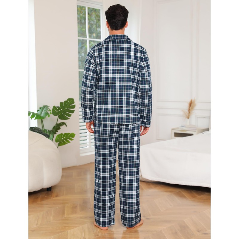 ENJOYNIGHT Mens 100% Cotton Flannel Pajamas Set Plaid Button Pjs Long Sleeve Sleepwear(Small, B+Green)