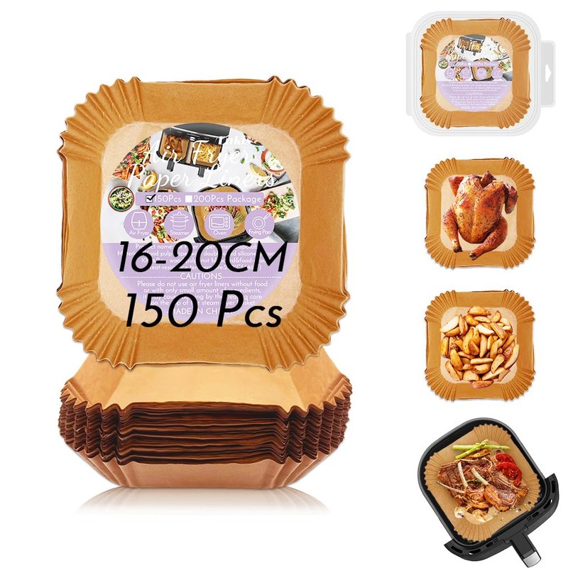 ENKIS Air Fryer Liners, 150pcs Non-Stick BPA-Free 7.9 inch/20 * 4.5CM Square Disposable Parchment Paper Liner, Great Value Accessory for 3.5L-5.5L Air Fryer (Small 16-20CM)