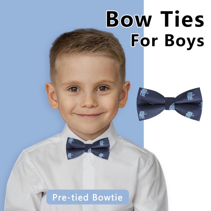 Enlision Blue Kids Bowtie Pre Tied Bow Ties for Boys Navy Elephant Toddler Bow Tie & Pocket Square Set