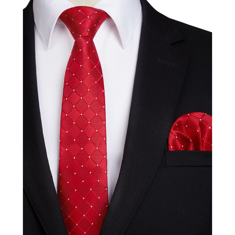 Enlision Red Ties for Men Wedding Ties and Pocket Square Set Check Palid Mens Ties for Business Work Party Christmas,Red