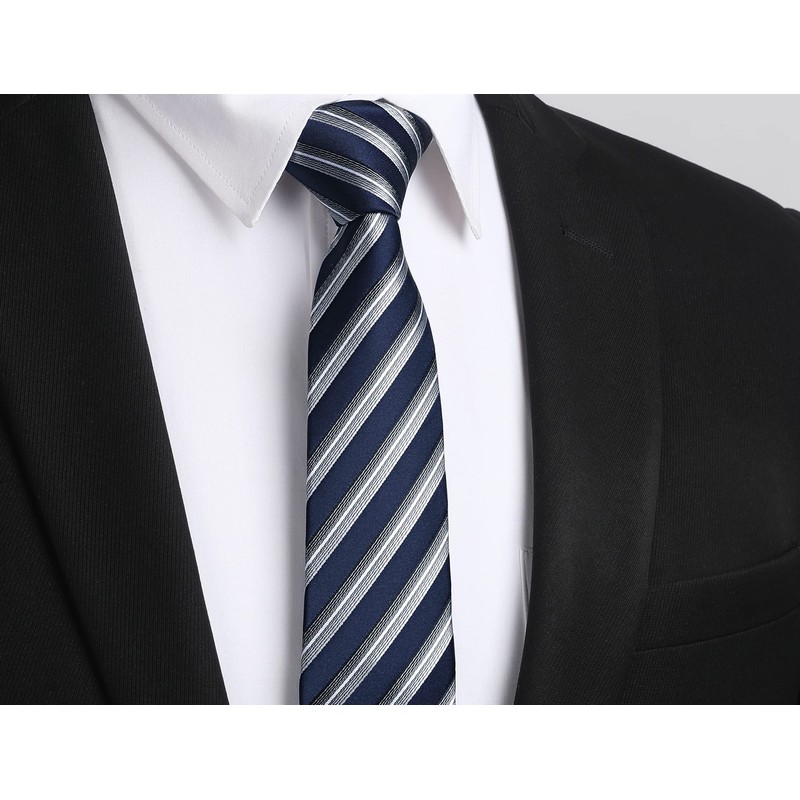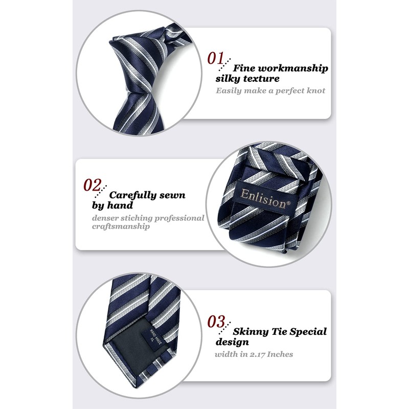 Enlision Slim Men's Tie Classic 6 cm Ties for Formal Wedding Business, Navy & Silver