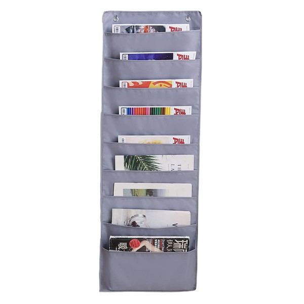 ENN LLC Document Storage 9 Pockets Wall Pocket A4 Fabric Door Hanger Hanging Storage Bag Documents Cartoon Magazine Envelopes Organize (Grey)
