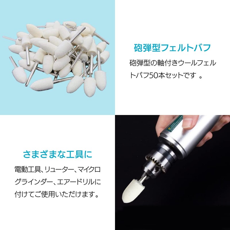 - This is a set of 50 wool felt buff with bullet-shaped shafts