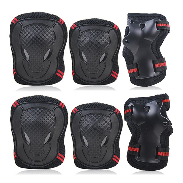 - 6 piece protector set to protect against injury caused by falls. Protect your wrist, palm, elbow and knee