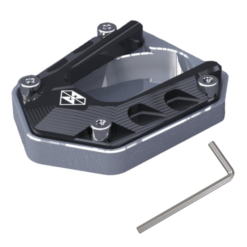 - Universal motorcycle side stand made of high quality high strength aluminum. Expand the footprint and disperse the force on the plate.