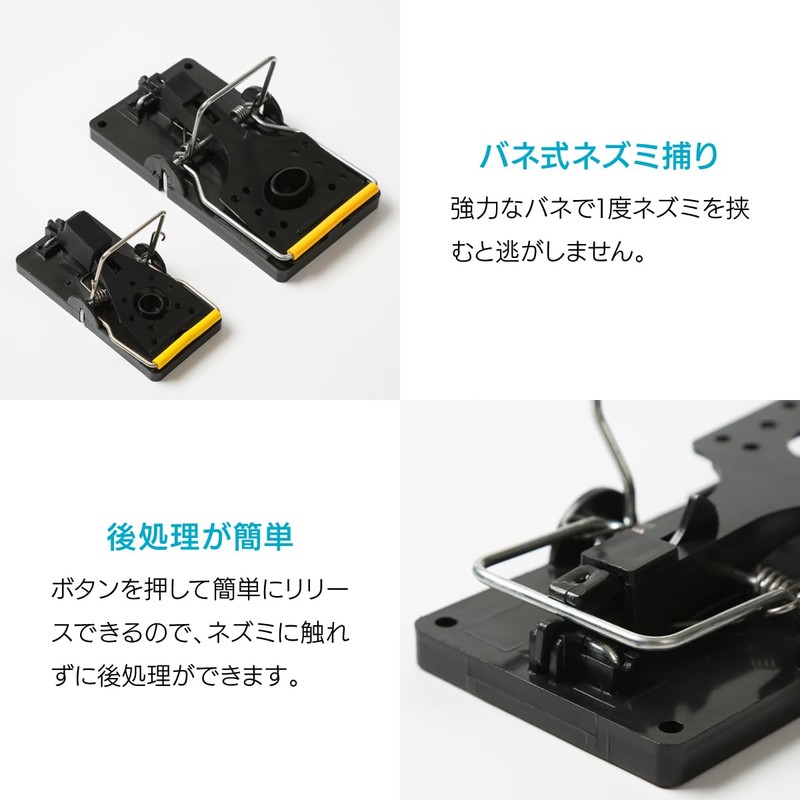 - Set of 4 spring loaded mouse traps. Strong spring holds a mouse once pinched to keep it from escaping