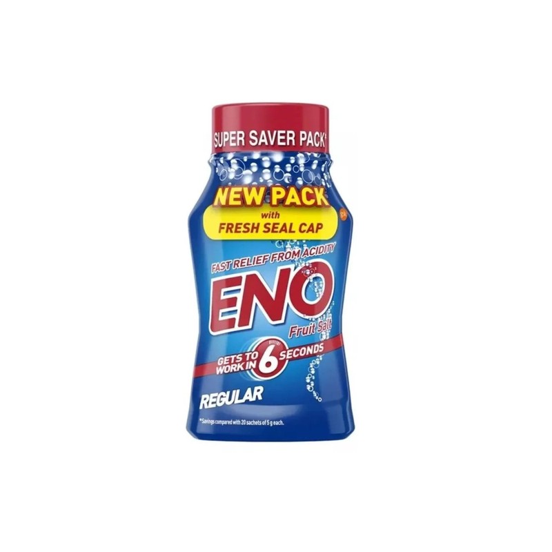 Experience fast-acting relief from acidity with ENO Fruit Salt Regular variant, now available in a super saver pack of three 100g bottles. Each bottle features an innovative fresh seal cap to maintain product efficacy. This effervescent antacid powder starts working in just 6 seconds, making it a reliable solution for quick acid neutralisation. The regular flavoured formula dissolves easily in water to create a refreshing drink that helps settle your stomach. Perfect for those occasional moments of acidity or indigestion, these convenient bottles are ideal for home use or travel. The economical triple pack offers great value compared to individual sachets. Store in a cool, dry place and always ensure the cap is tightly sealed after use. Each bottle contains multiple servings - simply follow the recommended dosage instructions on the package for optimal results.