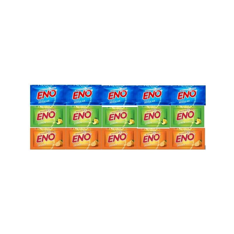 ENO Fruit Salt - Variety Pack - 5g Sachet Each - Regular x 5 sachets + Lemon x 5 sachets + Orange x 5 sachets