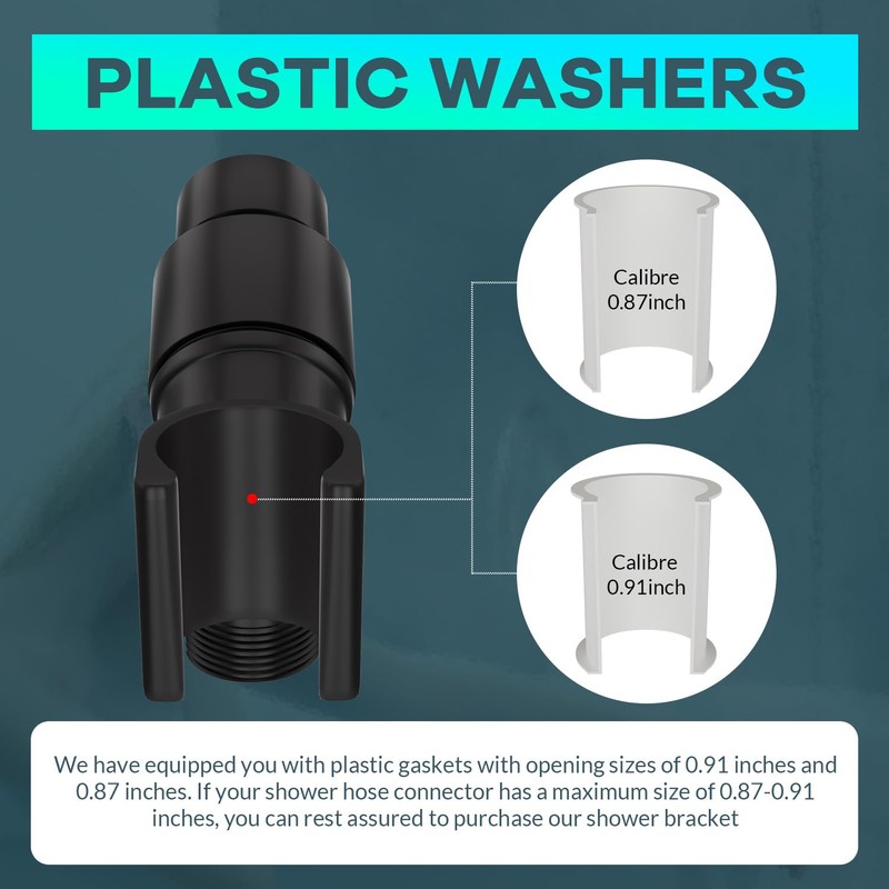- Metal: The shower head holder is made of high-quality brass. The brass material is stronger, corrosion-resistant and anti-aging. Unlike other cheap plastic shower head holders, you don't have to worry about it cracking, leaking or falling off, it will last a long time. If the maximum diameter of your shower hose base is greater than 0.87 inches, it will not fit the shower head bracket. Please make sure the size is correct before purchasing!