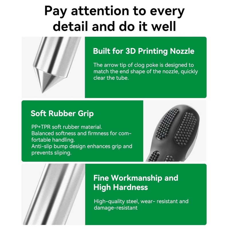 - 【Creality Clog Poke】New 3D printer nozzle cleaning kit works much better than small needles and there is no need for cleaning filament either. Turn a half-hour repair into a 3-second poke! Must-have 3d printer tool!
