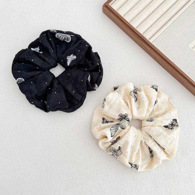 - Butterfly Pattern Design: 2PCS french oversized hair scrunchies with 6.5". Unique shape, not only butterfly pattern and bright small rhinestones, scattered thread is also one of the fashion vintage design. The big size hair ties are comfortable to wear