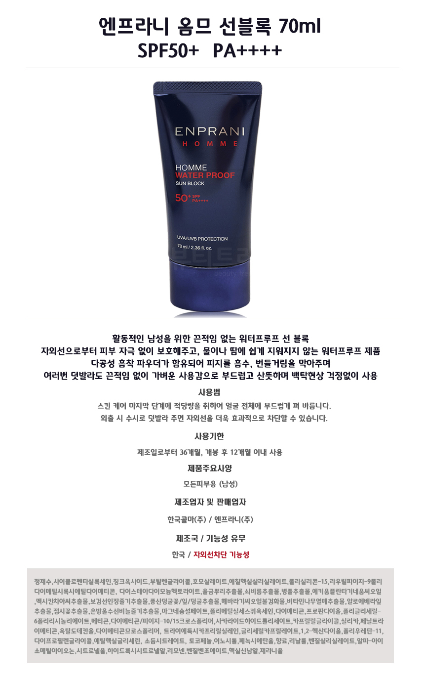 Enprani Homme Sunblock 70ml / 엔프라니 옴므 선블록 70ml