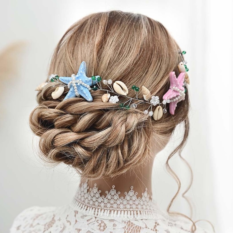 - La enredadera para el cabello de boda está hecha de estrellas de mar falsas y alambre de aleación. No te preocupes por la decoloración o el daño fácil.