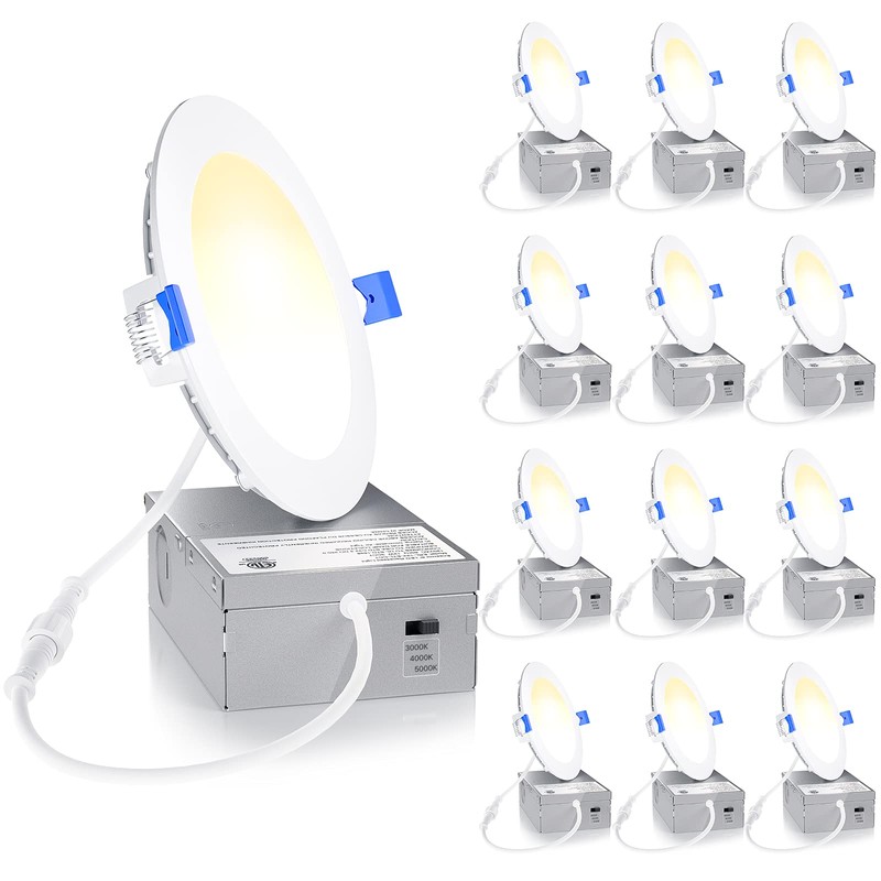 Ensenior 12 Pack 4 Inch Ultra-Thin LED Recessed Ceiling Light with Junction Box, 3000K/4000K/5000K Selectable, 9W 75W Eqv, Dimmable, 750LM High Brightness - ETL and Energy Star Certified