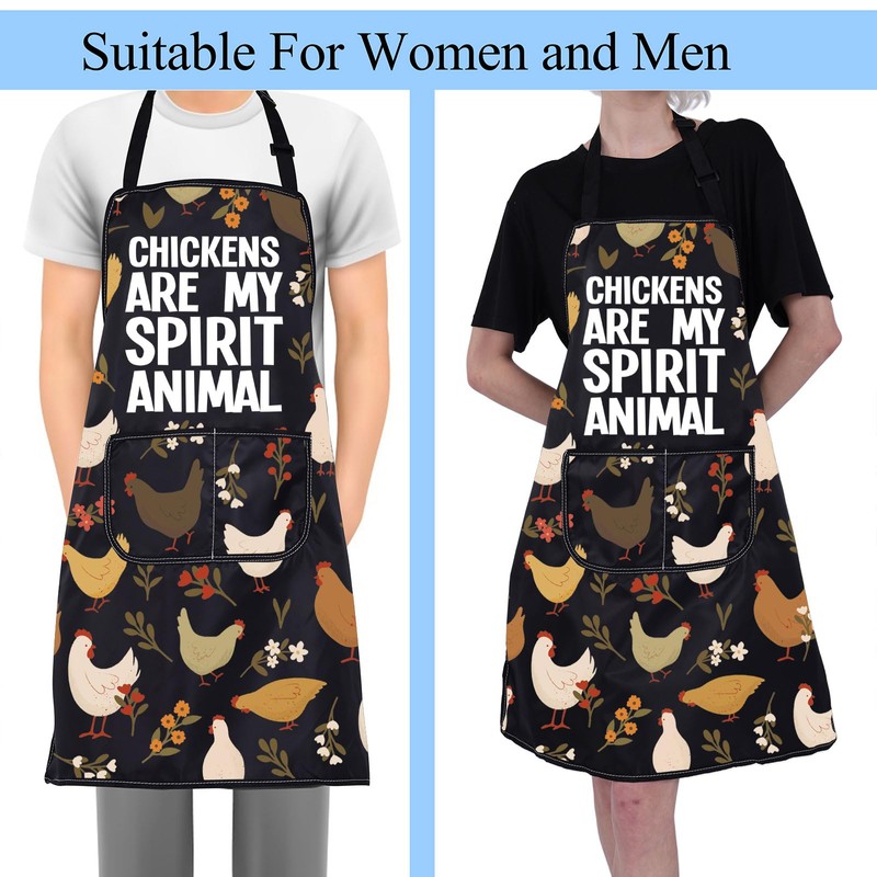 - MULTIPURPOSE APRON: The chicken print apron is for cleaning, doing housework, baking, cooking, crafting, gardening, doing chores, DIY, BBQ, etc. Applicable for housekeeping companies, kitchens, homes, and other occasions