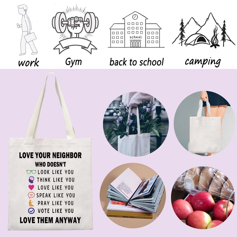 ENSIANTH Christian Faith Gift Love Your Neighbor Who Doesn't Tote Bag Equality and Acceptance Gift Bible Verse Shopping Bag (CA Neighbor bag)