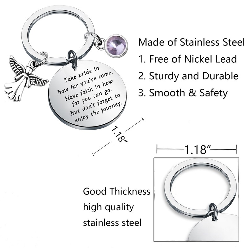 - MATERIAL&SIZE: This guardian angel with birthstone keychain is crafted of high polish stainless steel. As it is hypoallergenic, no harm to health and very durable suitable for treasure. Key chain pendant 1.18 inches diameter. keyring diameter: 1.18inches.