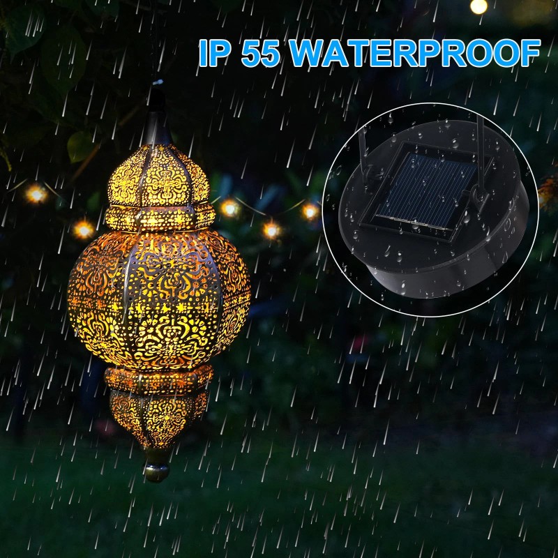 【Beautiful Decoration】Our hanging solar lantern is very elegant and beautiful as decorations, the warm light will cast a beautiful pattern on the floor or wall, enriches a joyful and romantic atmosphere in your house, add elegance and color to your house/yard with the beautiful hanging solar lights.