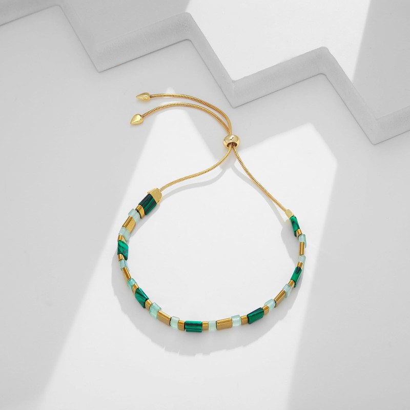 ENSKEFEN Flat Beaded Bangle Bracelets for Women Boho Colorful Beads Stack Bracelet Adjustable Slider Bracelet Fashion Friendship Bracelet-Green
