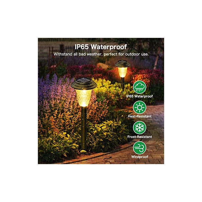 - ☀【Weather-resistant & Longer Lasting】: The solar yard lights use more advanced sealing and IP65 waterproof tech. No worries about rain, snow, frost, or high temperature. Corrosion-resistant ABS and high-quality plastic can ensure the long-lasting life and durability of solar lawn lights. Solar lights outdoor waterproof can withstand all kinds of weather for multi-season solar landscape lighting and outdoor decorations.