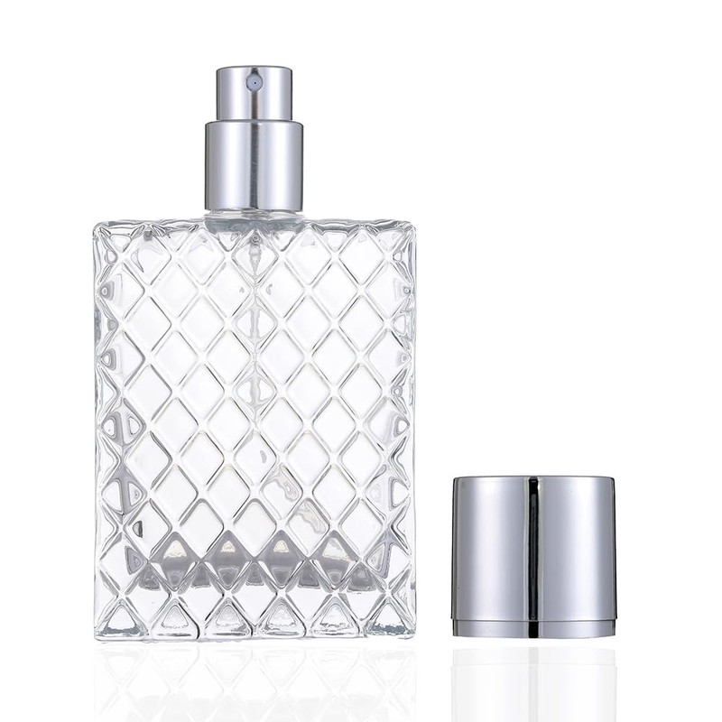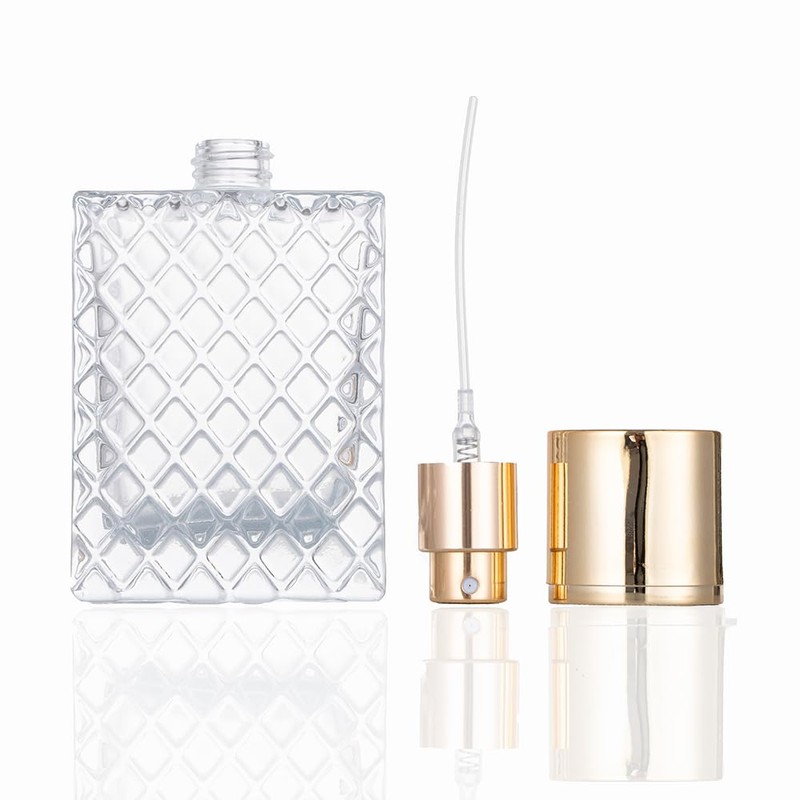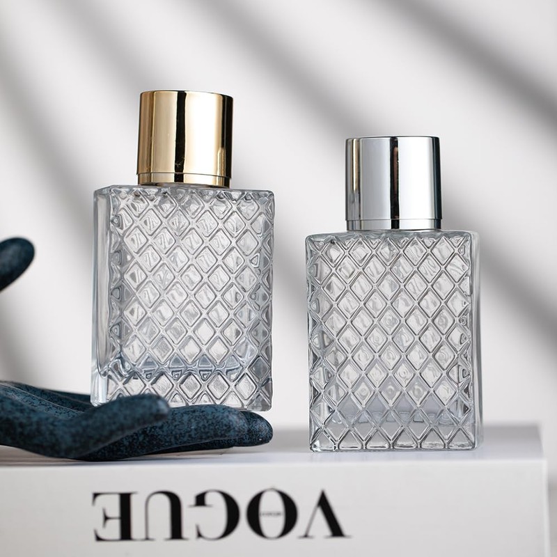 Enslz 50ML /1.7OZ Transparent Atomizer Spray Refillable Perfume Bottle, Portable Square Dispenser Empty Glass Bottle (Gold & Silver)