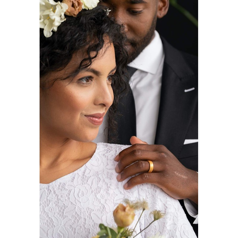 - UNISEX WEDDING BAND: This silicone wedding band looks great on men and women, allowing you and your fiancé to purchase a matching set! The thin ring is 6.6mm Wide, 1.75mm Thick. Purchase the same color ring for you and your partner, or complimenting colors.