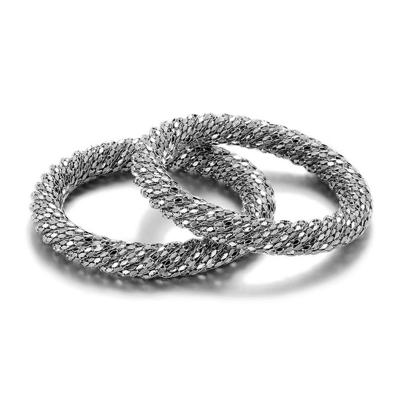 Ensoul 2.7" Inner Diameter Mesh Wire Twisted Metal Bracelets & Bangles Set for Women Luxury 2Pcs/Set, Metal