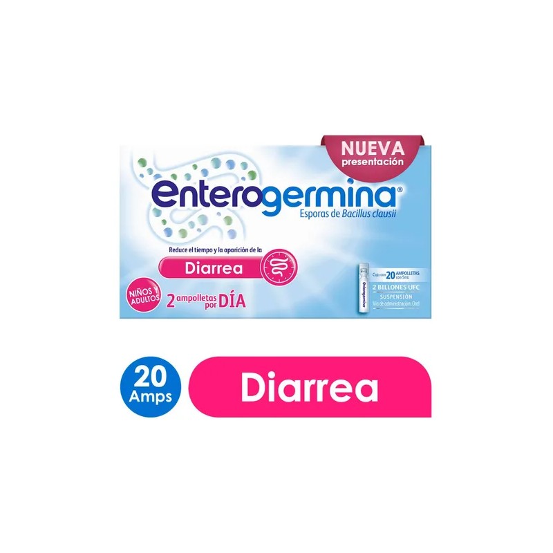 Enterogermina es un probiótico especialmente formulado para niños y adultos, que ayuda a restaurar el equilibrio de la flora intestinal después de desequilibrios causados por enfermedades, uso de antibióticos o cambios en la dieta. Este producto de fácil uso viene en ampolletas con 5 ml cada una, ofreciendo una dosis precisa y efectiva.