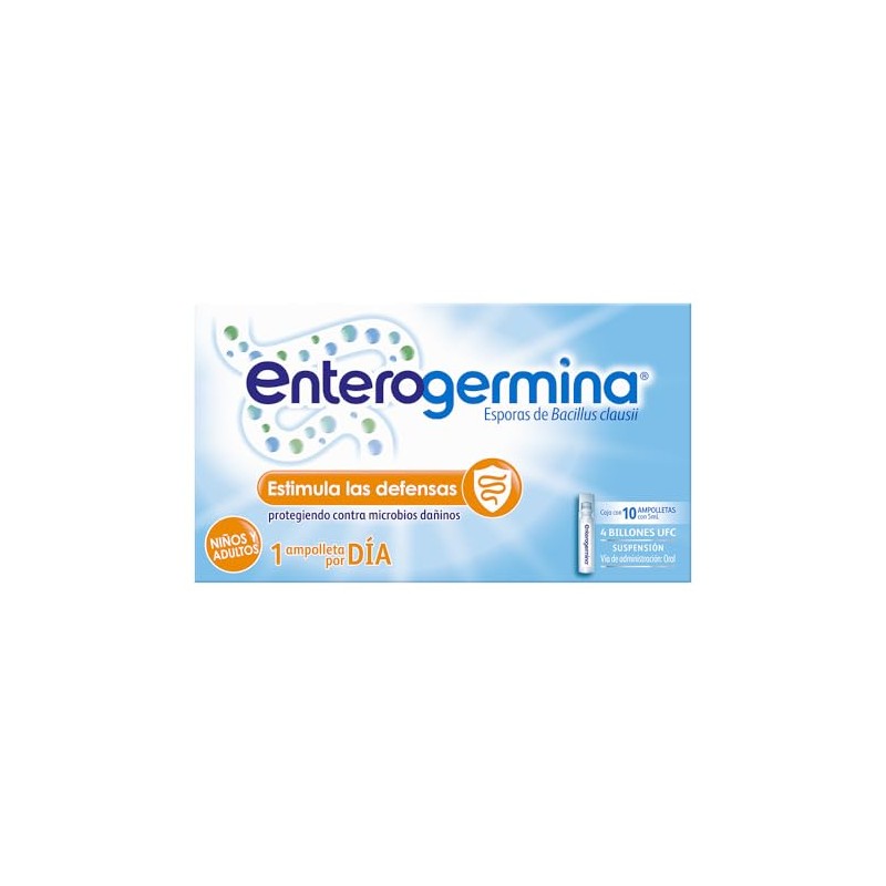 - ESTIMULA LAS DEFENSAS NATURALES DEL ORGANISMO: Enterogermina Probióticos estimula las defensas naturales del organismo protegiendo contra ataques de microbios dañinos Cada ampolleta contiene 4 Billones de UFC de probióticos Bacillus Clausii