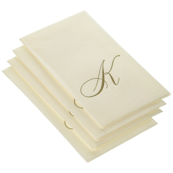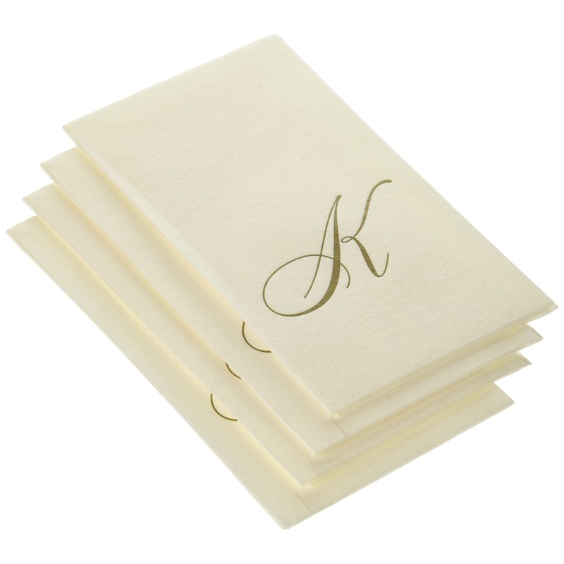 Entertaining with Caspari White Pearl Paper Linen Guest Towels, Monogram Initial K, 24-Pack