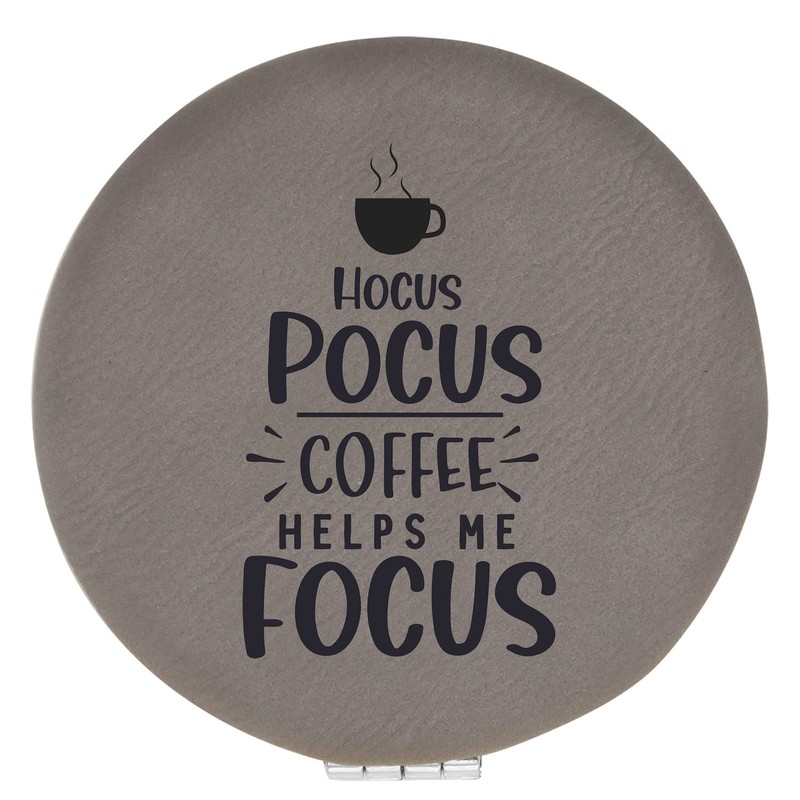 Enthoozies Hocus Pocus Coffee Helps Me Focus Gray Laser Engraved Leatherette Compact Mirror - Stylish and Practical Portable Makeup Mirror - 2.5 Inch Diameter