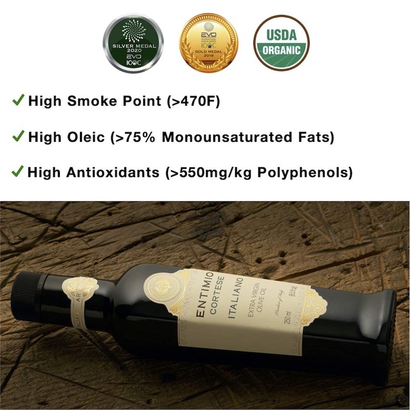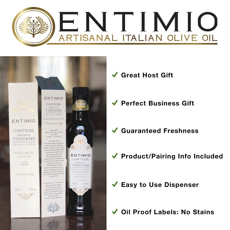 Entimio Cortese | Medium Organic Olive Oil Extra Virgin | 2019 Harvest Italian Olive Oil from Italy, Tuscany, Award Winning | Early Harvest, High Polyphenol, Keto Friendly | 8.5 fl oz by ENTIMIO