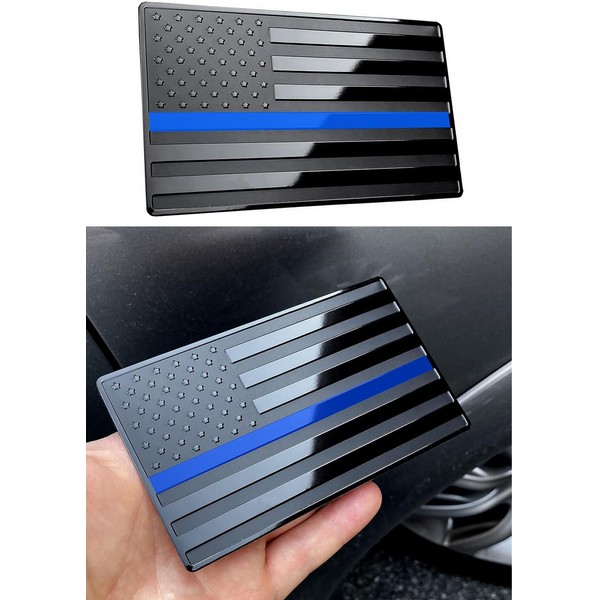 Display your patriotic spirit with this premium American Flag car emblem. Each pack includes 2 meticulously crafted metal decals, measuring 3.15 inches x 2 inches - the perfect size to make a statement without overwhelming your vehicle's appearance. The emblem features the classic stars and stripes design (thin blue line) with raised details, including 50 dimensional stars on a deep black. The high-quality construction ensures the emblem maintains its colors and details through various weather conditions. These versatile decals can be mounted on any flat surface of your vehicle, from the trunk to the hood. The durable adhesive backing provides a secure attachment while being safe for your vehicle's finish. Make your car stand out with this tasteful display of American that combines both style and substance.