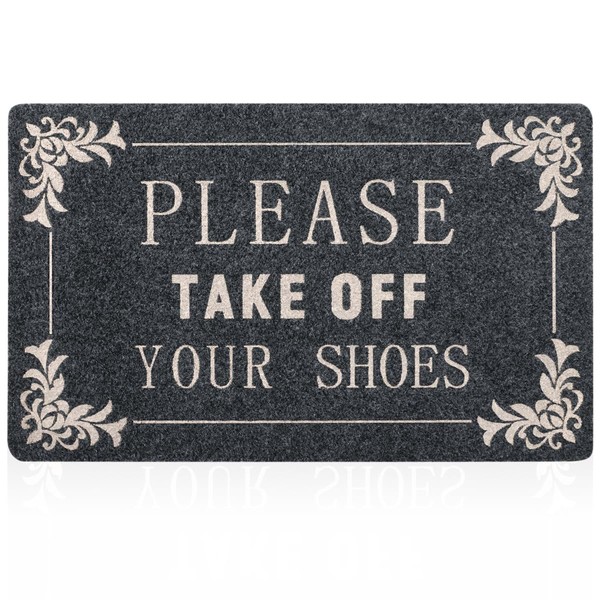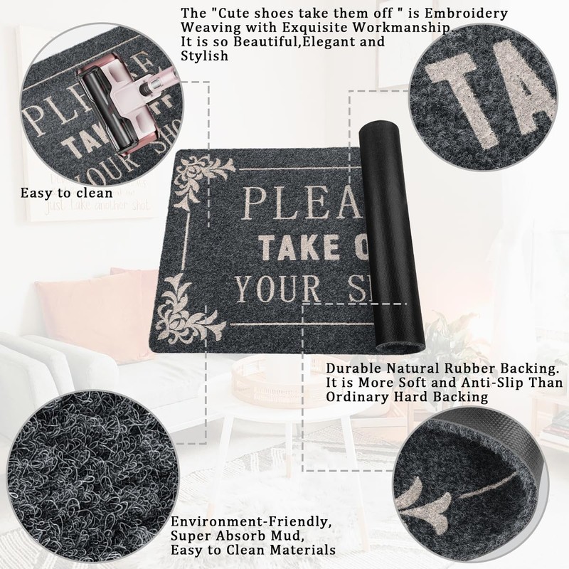 Entryway Please Take Off You Shoes Outdoor Mats with Rubber Backing Doormat Indoor Mat Polystyrene Backing Non Slip Natural Mat Grey