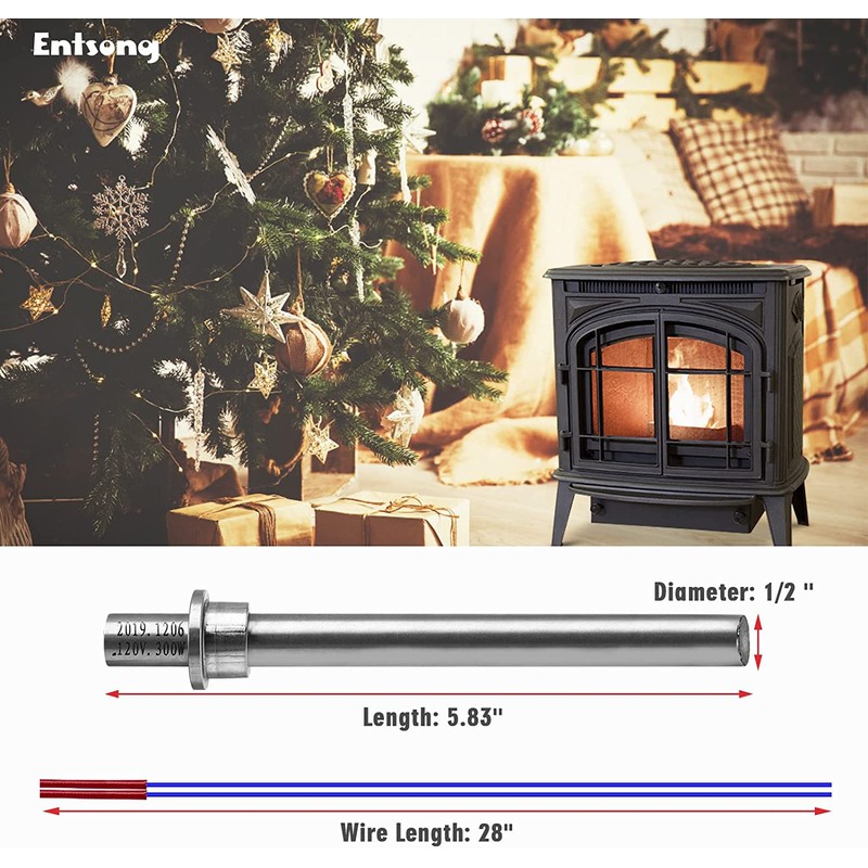 Entsong Fireplace Hot Rod Igniter,Replacement of Kozi Pellet Stove Ignitor,Fits for Kozi Part EC2-HA-120-AMP,300W 120V